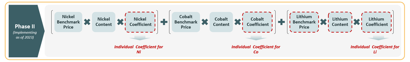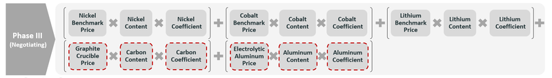 【Nickel Benchmark Price * Nickel Content * Nickel Coefficient + Cobalt Benchmark Price * Cobalt Content * Cobalt Coefficient + Lithium Benchmark Price * Lithium Content * Lithium Coefficient】