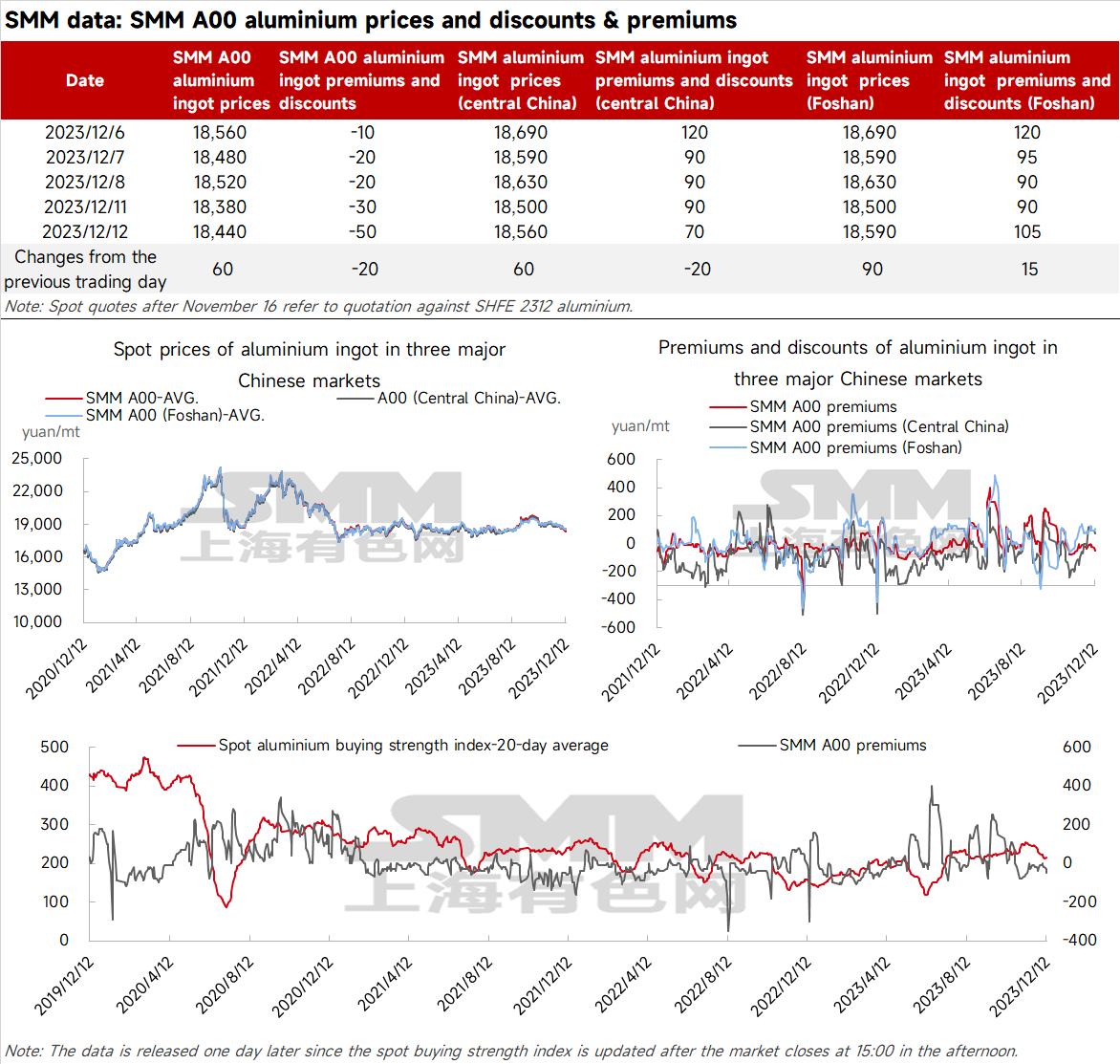 Trial calculation of SMM aluminium spot premium range on Dec 12, 2023