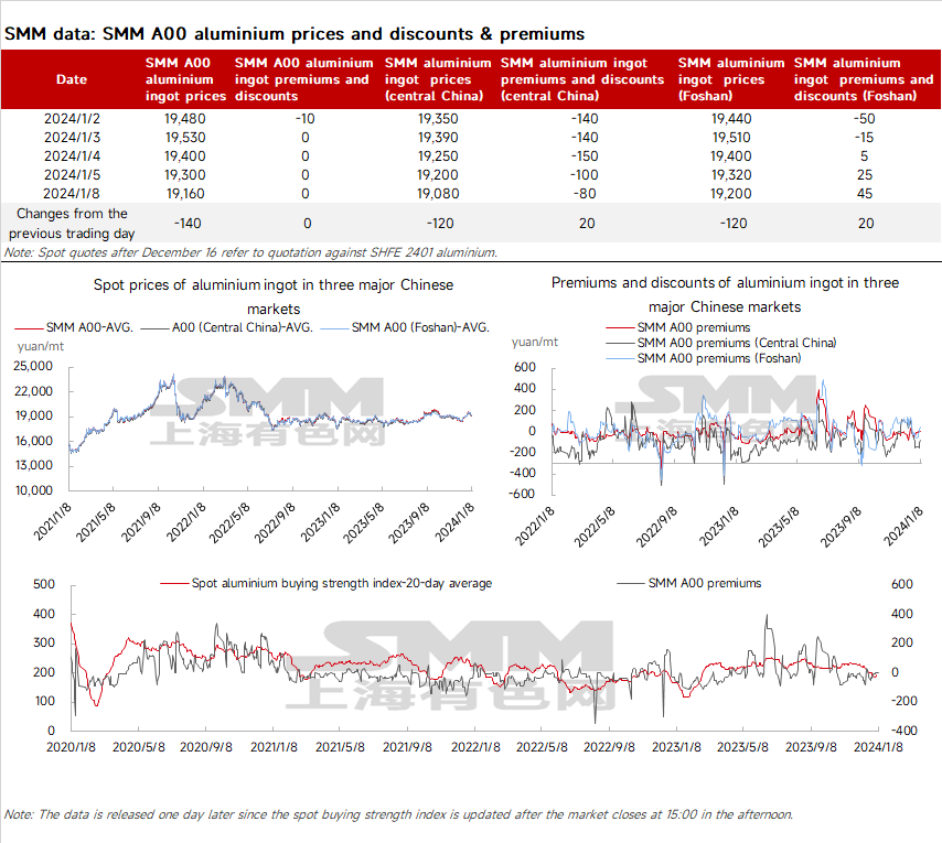 SMM data: SMM A00 aluminium prices and discounts & premiums
