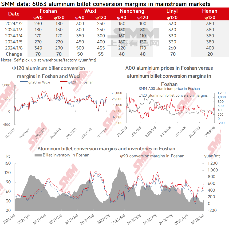 SMM data: 6063 aluminum billet conversion margins in mainstream markets