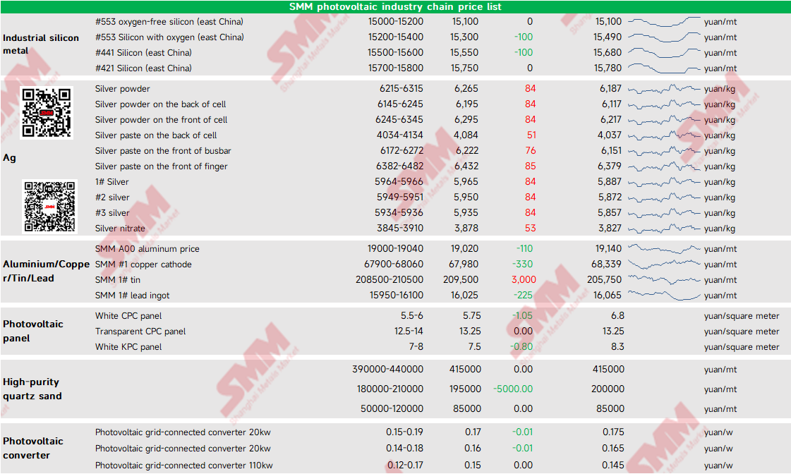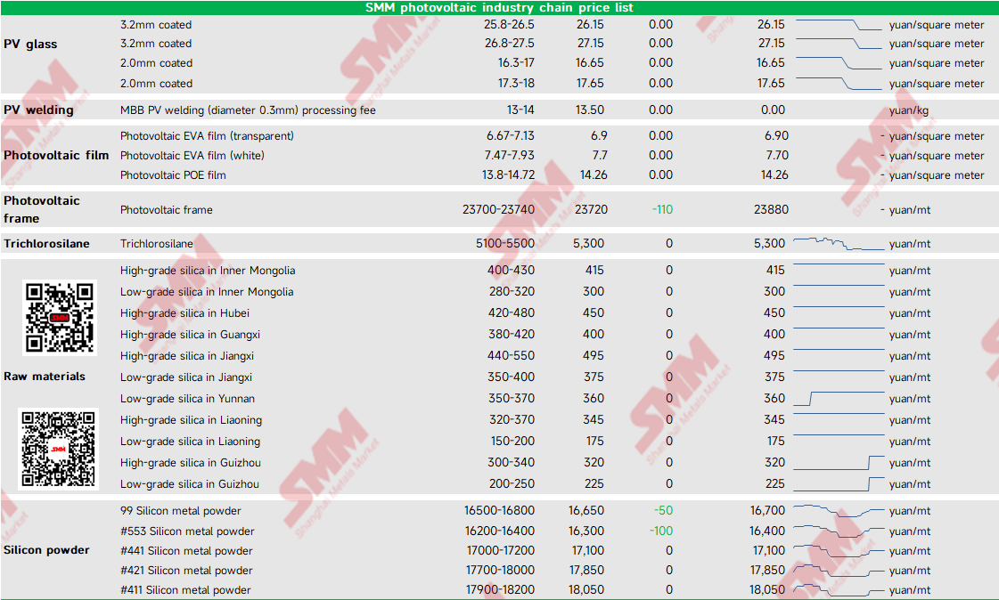 SMM photovoltaic industry chain price list
