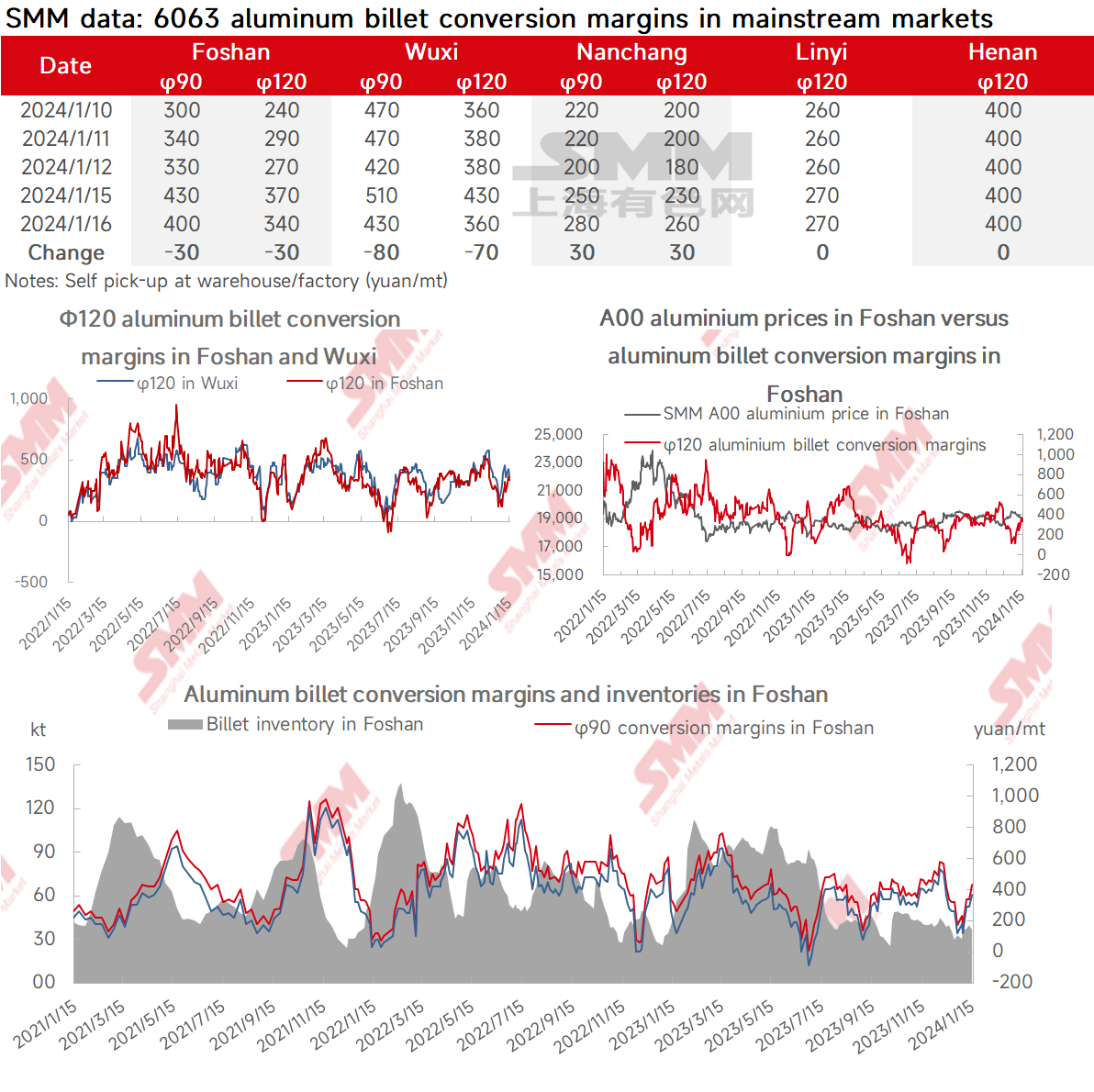 SMM data: 6063 aluminum billet conversion margins in mainstream markets
