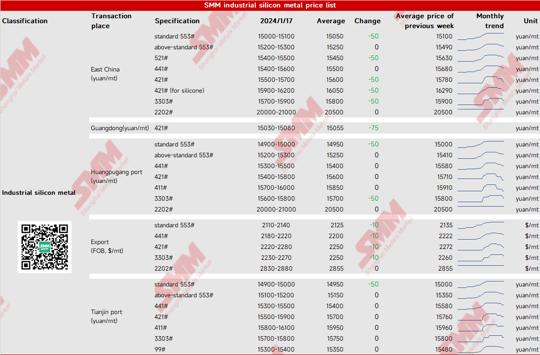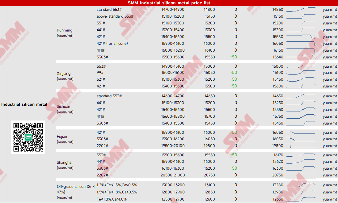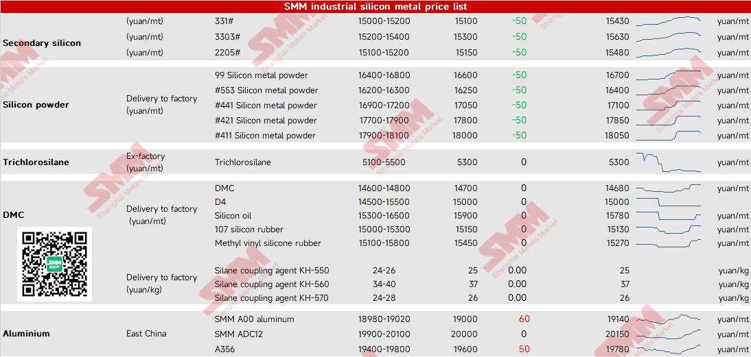 SMM industrial silicon metal price list