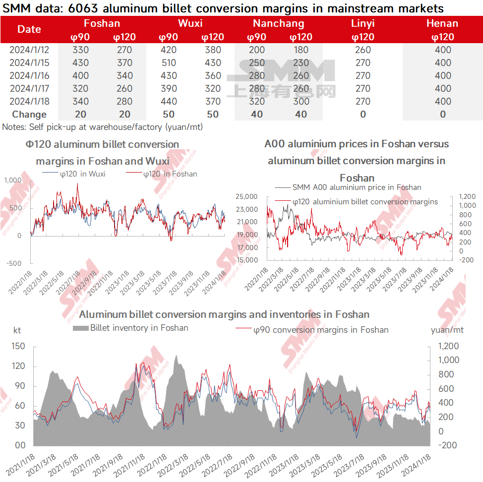 SMM data: 6063 aluminum billet conversion margins in mainstream markets