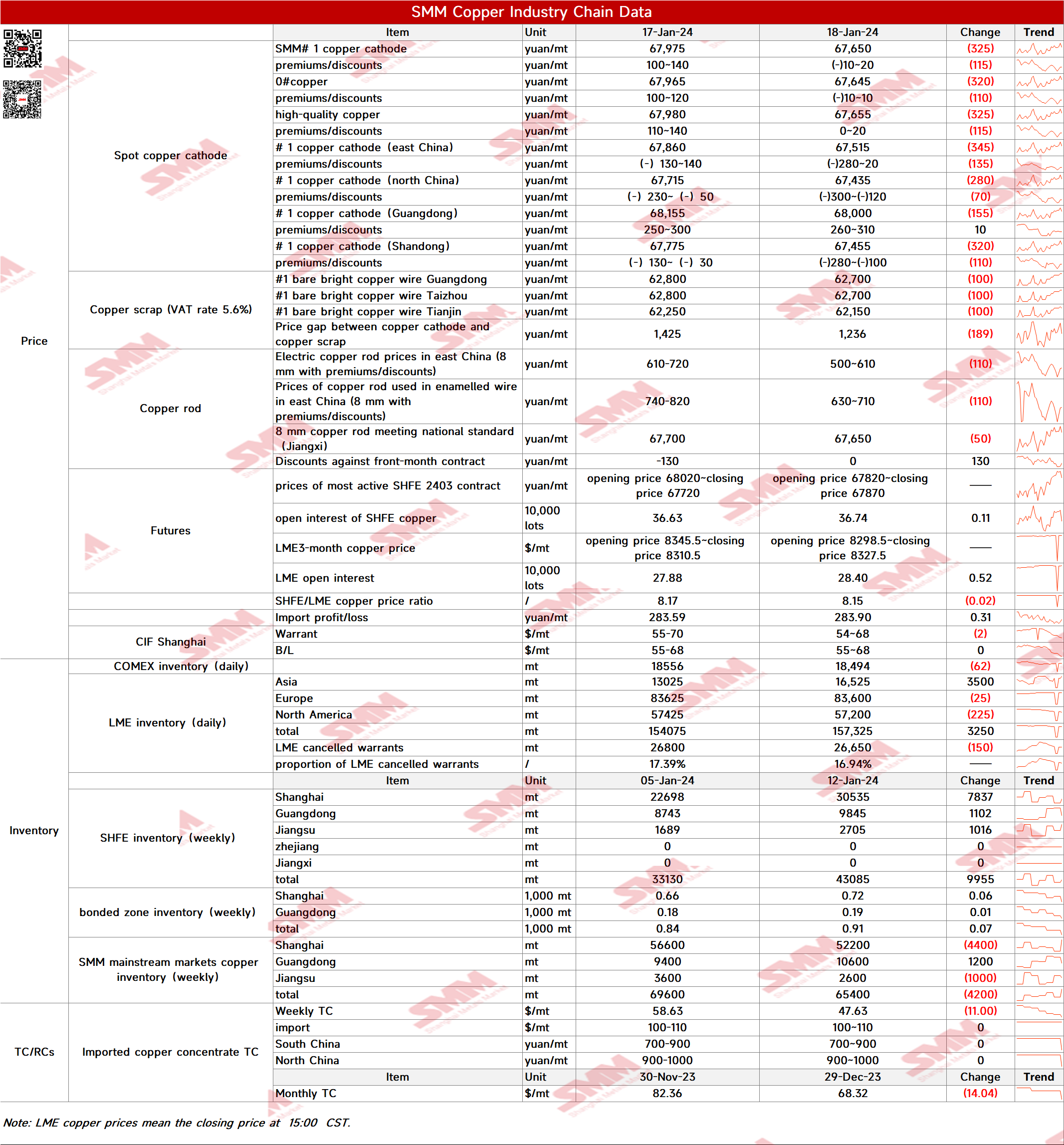 As of 15:00 CST January 18, the SMM copper cathode spot trading intensity index was decrease 38.08, a increase of 6.1 from the day before