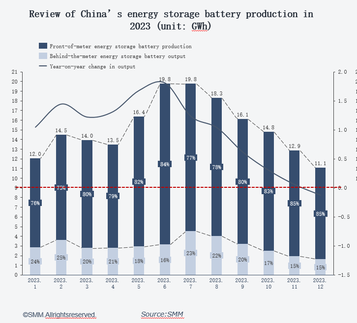 From the production perspective, the proportion of front-of-meter energy storage accounted for about 80% or more in 2023. In order to reduce the number of PACK cells and consequently the number of connectors in energy storage systems, thus lowering the cost of energy storage and enhancing the consistency of battery cells, there is an industry consensus on reasonably expanding the capacity of energy storage cells. Taking the 300Ah+ cells for example, most of the 300Ah+ energy storage cells still use the size (71173) of the 280Ah cells from the same manufacturer, which means a higher energy density can be achieved within the same volume, thereby reducing the overall cost of the energy storage system and improving project profitability. In the marketing of the 300Ah+ cell products by energy storage battery manufacturers, cost reduction is one of the most prominent selling points. In this context, the ability to mass-produce 300Ah+ cells has become a reflection of the product and technological competitiveness of lithium battery companies. Leading energy storage manufacturers are successively launching 300Ah+ cells, initiating a race to upgrade from 280Ah to 300Ah+. Based on incomplete statistics from SMM, companies expected to mass-produce 310+Ah cells by 2024 include CATL, ZF New Energy, Zhongchuang Xinhang, Penghui Energy Storage, Tianneng Battery, and Chu Energy New Energy, etc.