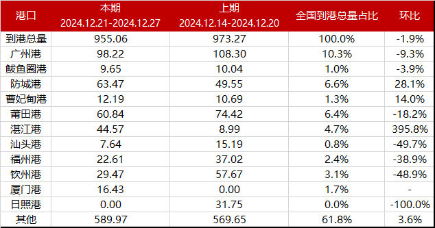 SMMChina's total coal arrivals reached 955.0610,000 mt, down 1.9% MoM. Among them, the total arrivals at 11main ports were 365.110,000 mt, down 9.5% MoM. Arrivals at Guangzhou Port totaled 98.2210,000 mt, accounting for 10.3% of total arrivals, down 9.3% MoM.