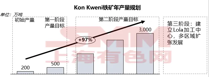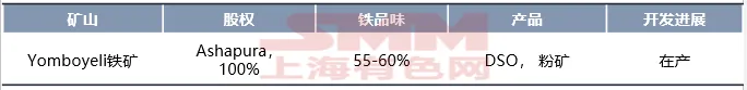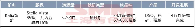 ◾ In 2022, Kalia iron ore's ownership primarily transferred to Stella Vista. According to the latest updates, the project adopts open-pit mining with an annual production of 7 million mt. The initial product is coarse ore with a grade of 58-60%, and later beneficiation will produce concentrates with a grade of 67-68%, with annual production reaching 10 million mt or more.