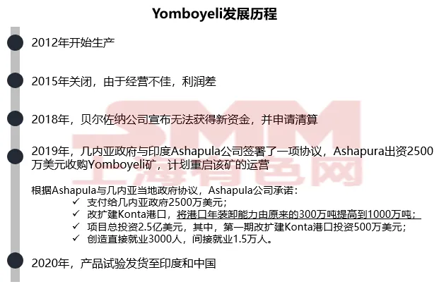 ◾ Yomboyeli (formerly known as Forecariah) is a small mine located in the Kindia region of Guinea. The mine primarily produces bauxite, with associated iron ore. Its iron ore products include DSO and fines. Due to its proximity to ports, exports are relatively convenient. However, due to market conditions and operational issues, the mine's production and sales are often intermittent.