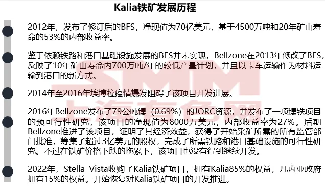 ◾ Before 2022, Kalia iron ore was owned by Bellzone Mining, which invested over $350 million to upgrade resources, increasing the project's resource volume from 240 million mt to 374 million mt in 2010 and over 600 million mt in 2011.
