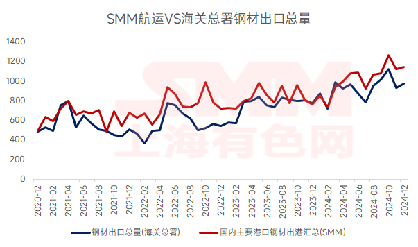 According to SMM's latest shipping data, steel port departures in December reached 11.4393 million mt, up 1.90% MoM, with the overall trend remaining consistent. Based on SMM's latest steel mill export scheduling data, January's planned export volume is expected to increase by 12.9% compared to December's actual export volume. Therefore, SMM anticipates that steel export volumes in January may increase compared to this month!