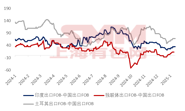As of January 13, 2025, FOB export prices for HRC in India, Turkey, and the CIS were $507/mt, $540/mt, and $485/mt, respectively, while China's HRC FOB export price was $472/mt. Currently, China's HRC export prices are $35/mt, $68/mt, and $13/mt lower than those of other countries, with MoM price advantages of +6.06%, -6.85%, and +750%, respectively.