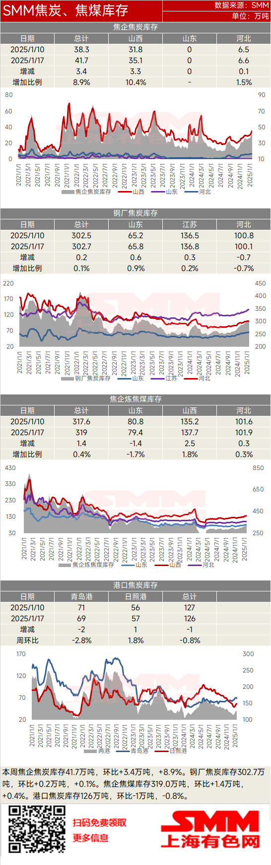 [SMM Coke and Coking Coal Inventory: This Week's Coke Inventory at Coking Plants Reached 417,000 mt]
