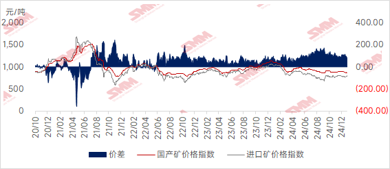 Considering both domestic and imported ore prices, imported ore prices rose significantly this week, narrowing the price spread between domestic and imported ore. The price spread is expected to widen next week.