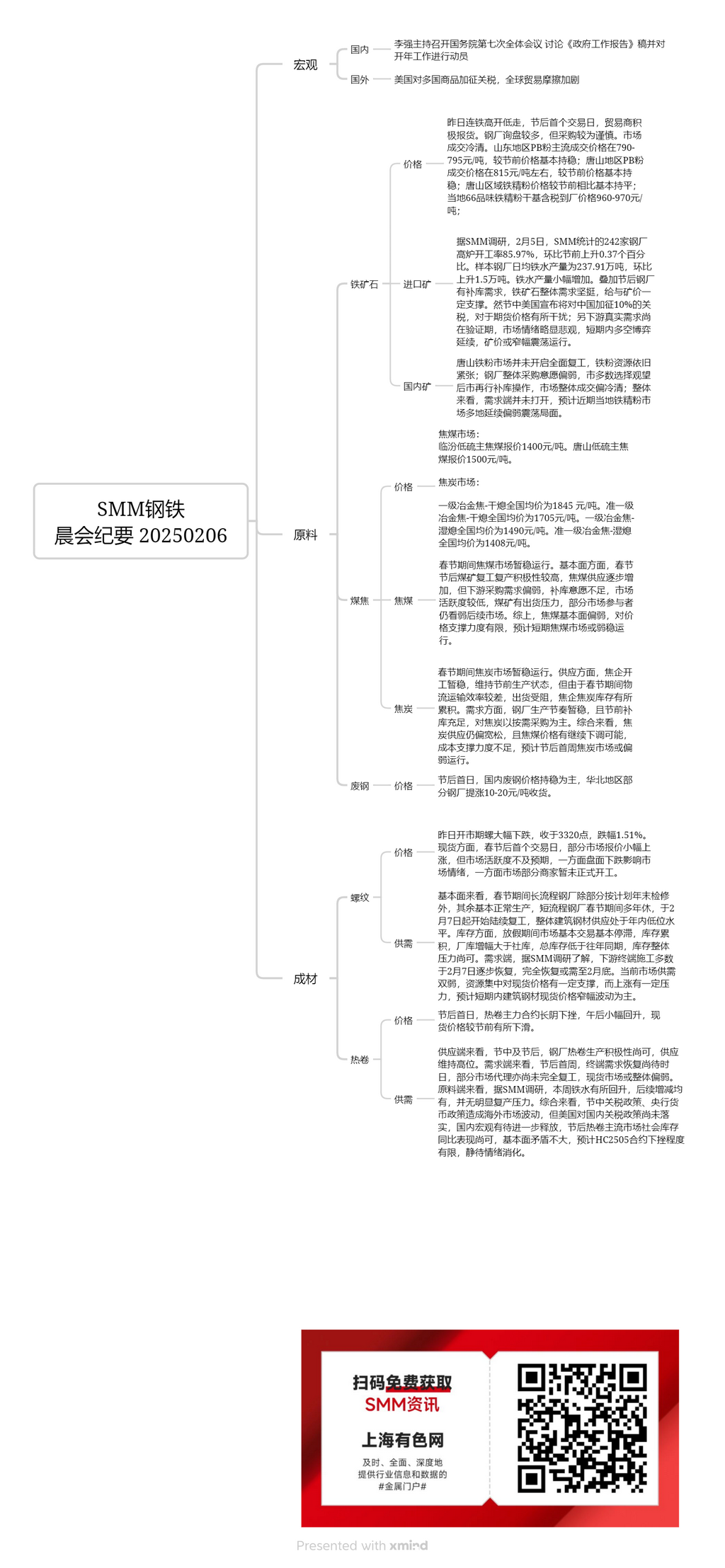 According to an SMM survey, as of February 5, the operating rate of blast furnaces at 242 surveyed steel mills was 85.97%, up 0.37 percentage points from pre-holiday levels. The daily pig iron production of the sample steel mills was 2.3791 million mt, up 15,000 mt. Pig iron production increased slightly. Coupled with post-holiday restocking demand from steel mills, overall demand for iron ore remained strong, providing some support for ore prices. However, during the holiday, the US announced a 10% tariff increase on Chinese goods, which disrupted futures prices. Additionally, downstream real demand is still in the verification phase, and market sentiment appeared slightly pessimistic. In the short term, the tug-of-war between longs and shorts is expected to continue, and ore prices may fluctuate rangebound.