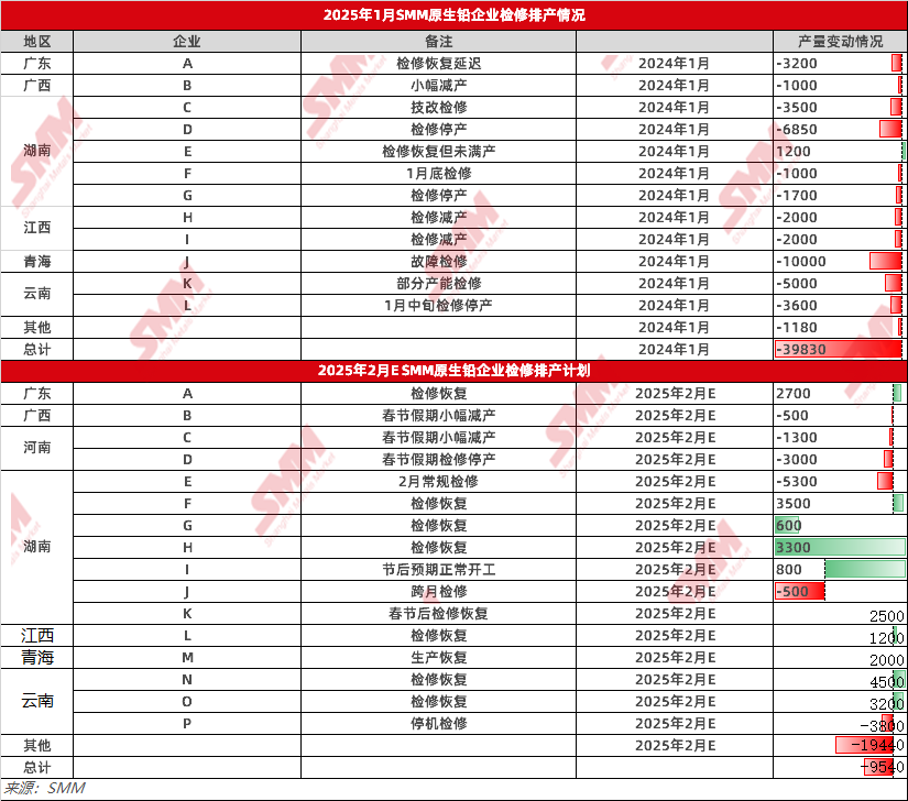 According to the SMM production schedule survey, as the Chinese New Year holiday approached in January, smelters in regions such as Hunan, Guangdong, and Jiangxi underwent concentrated maintenance. The specific survey findings are as follows: