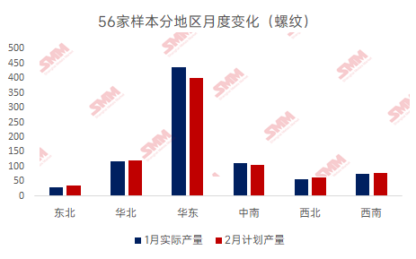 East China: Steel mill profits ranged from (-100-200). Some areas continued production control with poor profitability, and additional maintenance was scheduled. Overall, planned February construction steel production in the region decreased MoM.