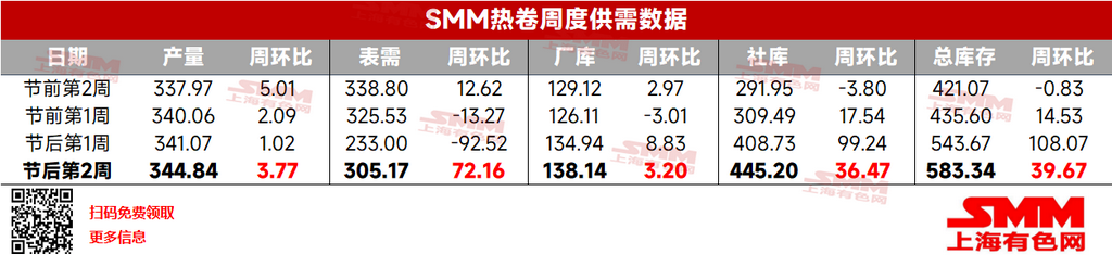 1. SMM weekly HRC production/apparent demand/inventory data are based on a sample of 40 steel mills and 86 mainstream domestic market warehouses.
