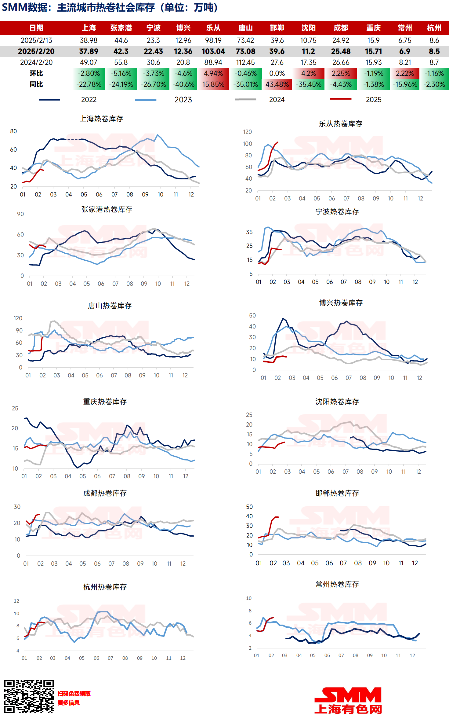 This week, Lecong HRC inventory reached 103,040 mt, up 48,500 mt WoW (+4.71%), with a YoY increase of 87,600 mt (+8.50%) on a lunar calendar basis.