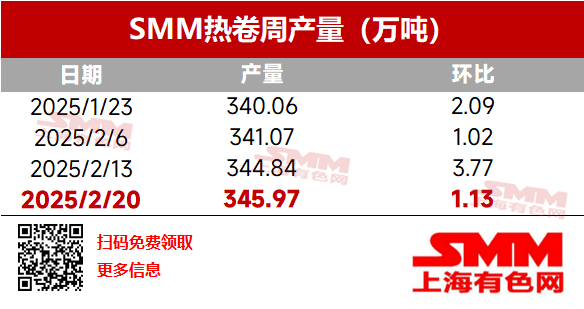 No new maintenance was added this week, and steel mill production increased slightly. From late February to early March, some steel mills in north and south China are expected to undergo maintenance, limiting the short-term growth potential of HRC production.