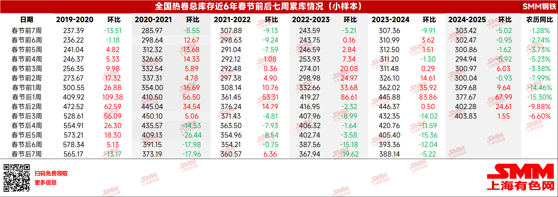 This week, Shanghai HRC inventory stood at 378,900 mt, down 10,900 mt WoW (-2.80%), with a YoY decline of 21.21% on a solar calendar basis and 13.20% on a lunar calendar basis.