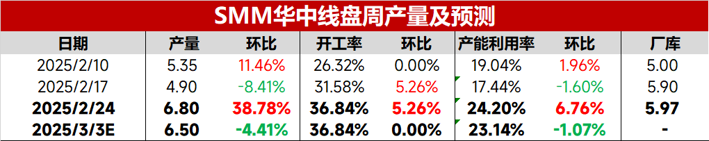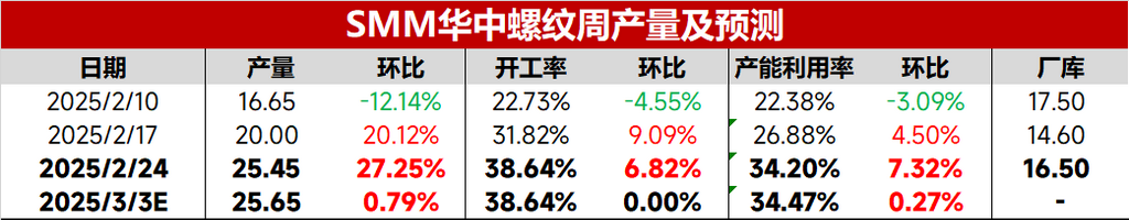 During the survey period (February 18 to February 24), the operating rate and capacity utilisation rate of rebar and wire rod rolling lines in steel mills in Central China increased.