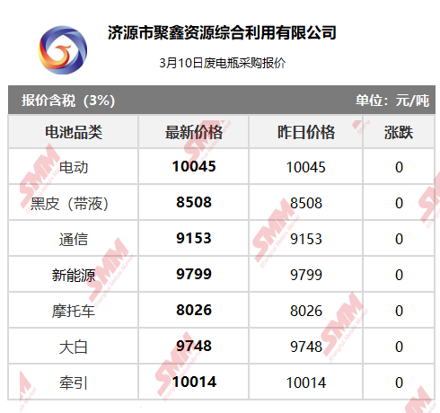 Jiyuan Juxin Resource Comprehensive Utilisation Co., Ltd. Scrap Battery Purchase Quotation on March 10