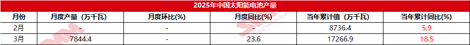 Monthly Production of Solar Cells (PV Cells) in March 2025