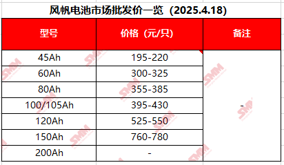 Fengfan Battery Market Wholesale Price List (April 18, 2025)