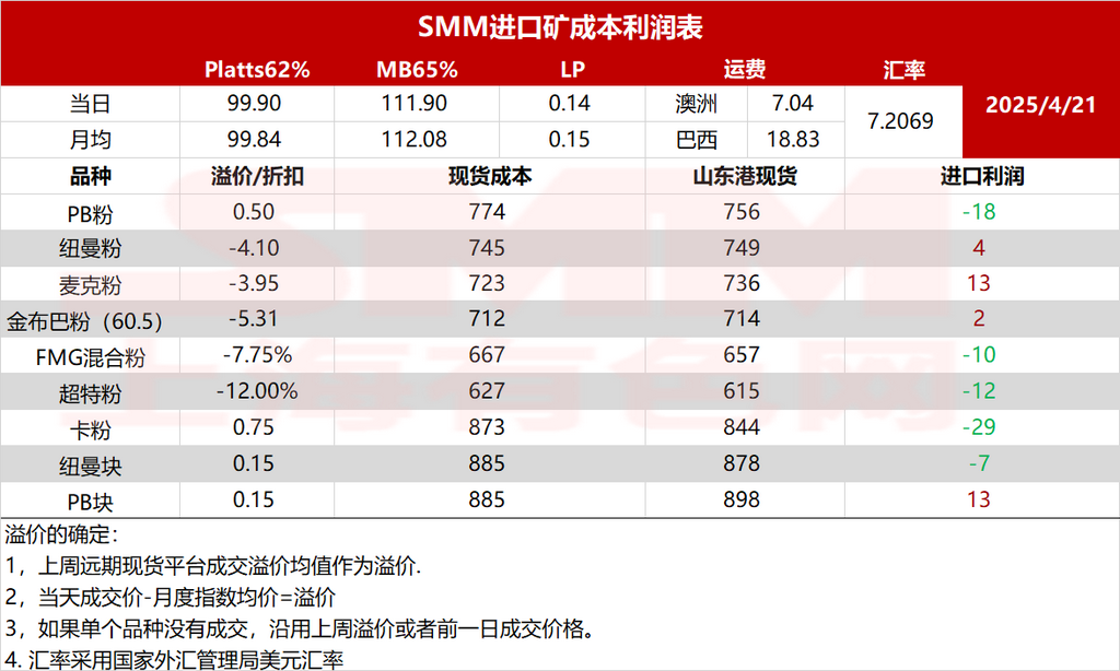 Iron Ore Import Cost and Profit Statement on April 21, 2025