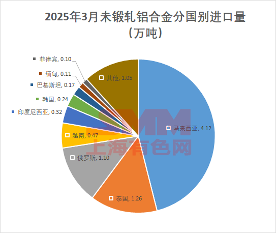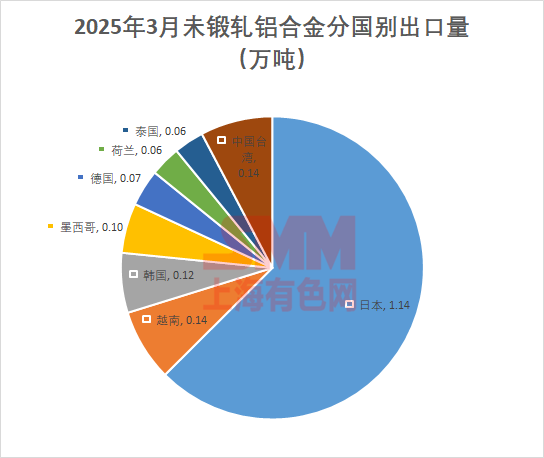 Imports and Exports of Unwrought Aluminum Alloy by Country in March 2025