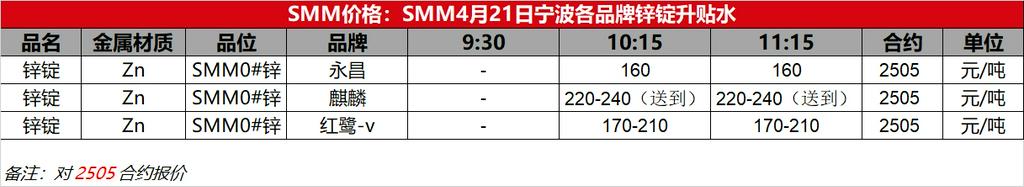 Premiums and Discounts for Various Brands of 0# Zinc in Ningbo on April 21