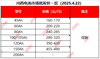 Wholesale Price Overview of the Western Sichuan Battery Market (April 22, 2025)