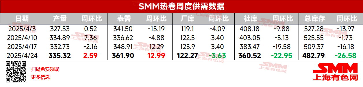 The impact of steel mill maintenance decreased, and HRC supply increased slightly; futures first fell and then rose, driving an improvement in market sentiment during the price increase period, with end-users actively purchasing at low prices, and social inventory continued to decline significantly. Looking ahead, in the short term, new steel mill maintenance remains limited, and supply pressure fluctuates at high levels. Next week coincides with the pre-Labour Day restocking period, with a relatively long holiday, and the macro Politburo meeting is imminent, which is expected to improve market sentiment. End-user restocking may be released, and the national social inventory is expected to continue to decline in the short term.