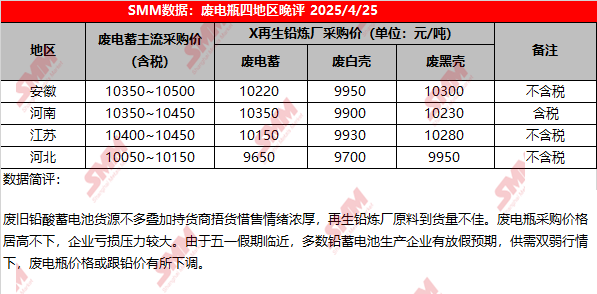 SMM Evening Review: Summary of Secondary Lead Market Transactions on April 25