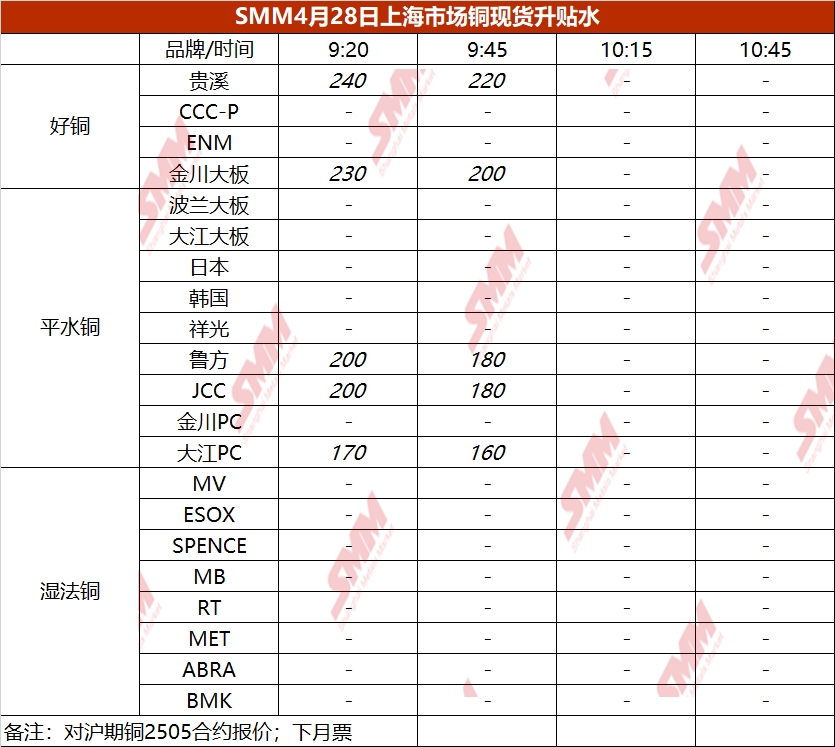 Spot premiums/discounts for copper in Shanghai market on April 28 (second session) [[SMM Price]]