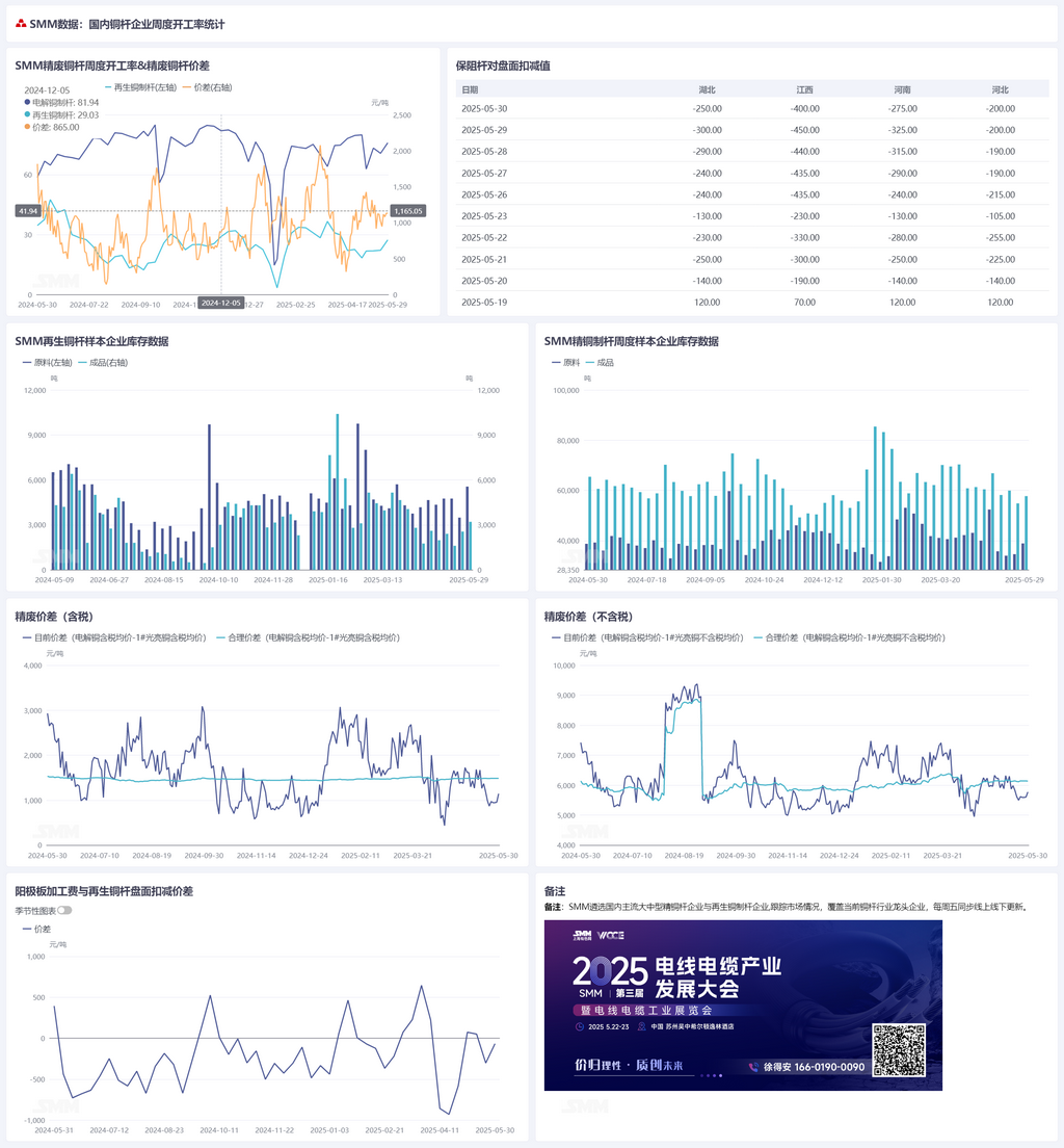 Looking ahead to next week, with the Dragon Boat Festival holiday lasting only one day, it will not significantly impact the procurement and production arrangements for secondary copper rod. Given sufficient raw material inventories, the operating rate of secondary copper rod is expected to be 30.49% next week.