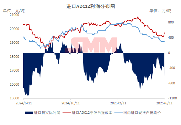 In the import market, the CIF quote for imported ADC12 continued to rise slightly to $2,400-2,420/mt. The import spot price was quoted around 19,100 yuan/mt, and the import real-time loss widened again to 600 yuan/mt. The local ADC12 price in Thailand, excluding tax, was quoted at 81-81.5 Thai baht/kg.