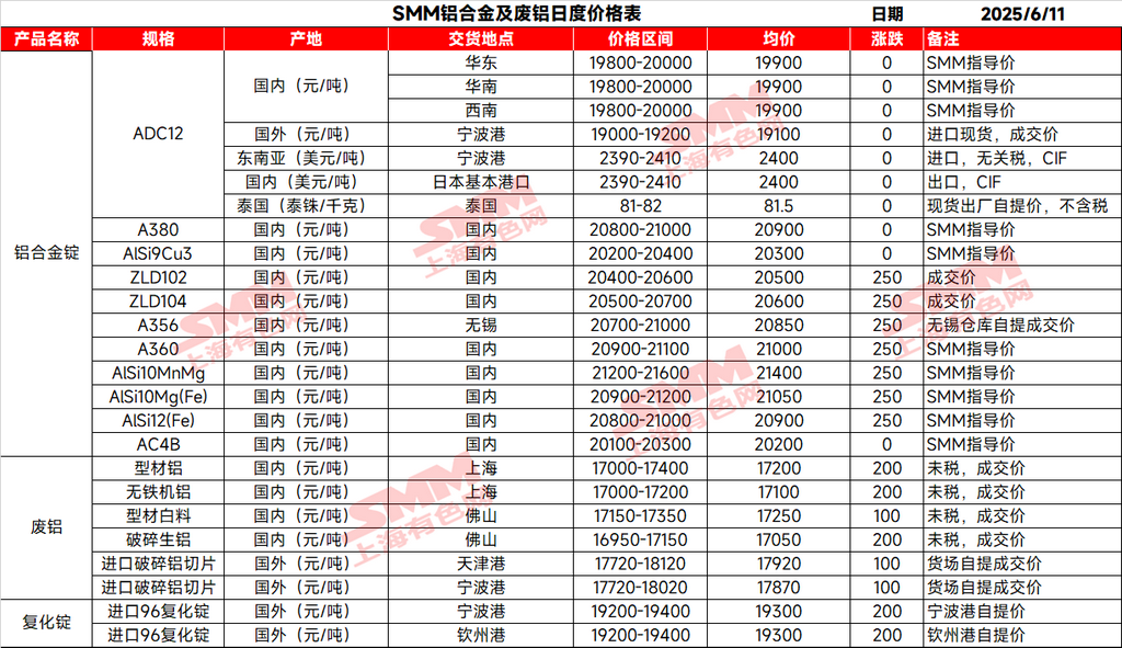 》Click to view SMM spot aluminum quotes