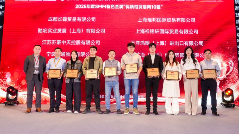 On November 25, at the banquet of the Shanghai Metals Expo (SME) 2025, organized by SMM Information & Technology Co., Ltd. and SMM Trading Center Co., Ltd., SMM held a grand awards ceremony for the 2025 SMM Nonferrous Metals "Top 10 High-Quality Lead Traders".