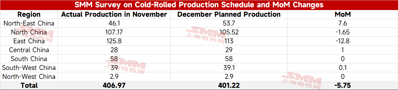 - SMM Cold Rolling Production Schedule: Cold Rolling Production at Steel Mills Slightly Decreased in December