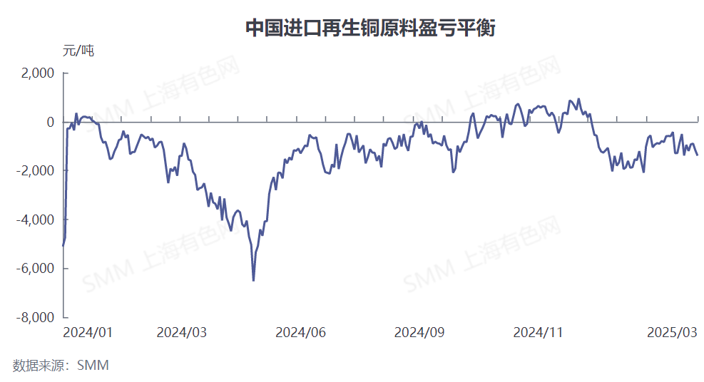 En términos de ganancias/pérdidas de importación, la expectativa de posibles aranceles sobre el cobre importado por parte de Trump ha impulsado el flujo de cátodos de cobre hacia EE. UU. Como resultado, los precios del cobre en COMEX aumentaron, y la diferencia de precios entre el cobre de COMEX y LME se amplió, alcanzando nuevos máximos, impulsando los precios del cobre en LME. Esta serie de reacciones en cadena llevó a una pérdida generalizada en la importación de materias primas secundarias de cobre en 2025, reduciendo significativamente la disposición de los comerciantes a comprar.