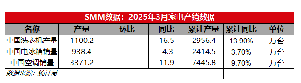 Datos de Producción y Ventas de Electrodomésticos para Marzo 2025 [Datos SMM]