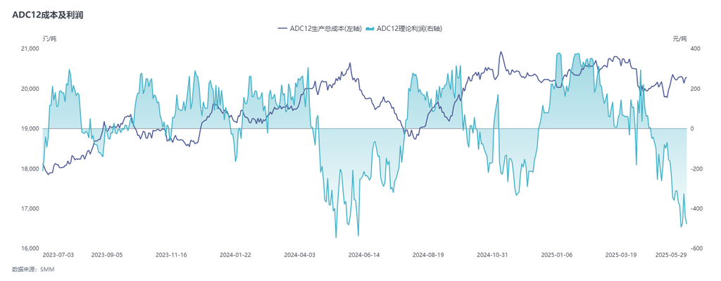 En el lado de los costos, la chatarra de aluminio, que representa casi el 90% de la composición principal de los costos de ADC12, influyó significativamente en los movimientos de los precios. Aunque los precios retrocedieron a principios de mes, la menor circulación en el mercado llevó a los operadores a no ceder en los precios, proporcionando un fuerte apoyo a los costos. A mediados de mes, las subidas consecutivas de los precios del aluminio primario impulsaron aún más los precios de la chatarra de aluminio, aumentando la presión de transmisión de costos para las empresas. En cuanto a los costos del silicio, los precios del silicio #553 con soplado de oxígeno continuaron cayendo, con una caída acumulada de 1.100 yuanes/tonelada hasta los 8.300 yuanes/tonelada en mayo, reduciendo gradualmente su proporción de costos. En general, a pesar de las caídas parciales de los precios de las materias primas, los precios de la chatarra de aluminio fluctuando en máximos mantuvieron las cargas de costos generales elevadas. Las pérdidas teóricas de producción persistieron durante todo el mes y se ampliaron aún más a finales de mes, ya que los precios de los lingotes de aleación acabados cayeron más que los costos.