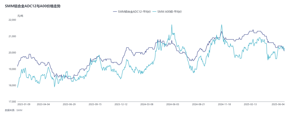 Los precios del aluminio cayeron primero y luego subieron en mayo, con el centro de precios repuntando gradualmente por encima de los 20.000 yuanes/tonelada. El precio spot promedio del aluminio en mayo (mes calendario) fue de 20.126 yuanes/tonelada, un aumento del 0,9% intermensual. Los precios de ADC12 siguieron las bajas, pero no las subidas, y el precio promedio de mayo cayó un 1,5% intermensual en contra de la tendencia. Hasta el 4 de junio, las cotizaciones de SMM ADC12 bajaron 300 yuanes/tonelada intermensual hasta los 20.000-20.200 yuanes/tonelada.