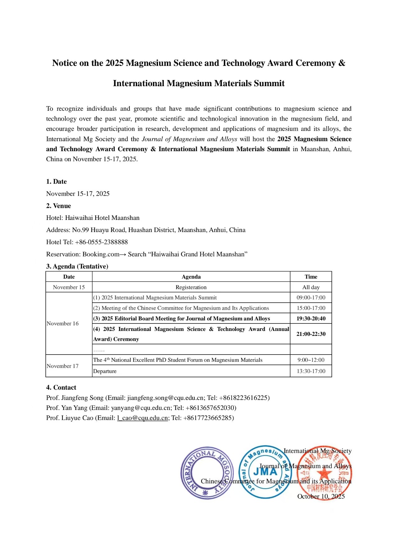 Replay: The 4th National Excellent PhD Student Forum on Magnesium Materials