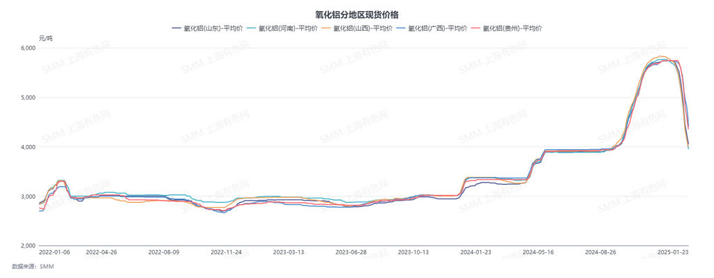 À ce jeudi, l'indice pondéré régional SMM s'établissait à 4,096 yuans/mt, en baisse de 602 yuans/mt par rapport à la semaine précédente. Parmi eux, le Shanxi a rapporté 4,000-4,100 yuans/mt, en baisse de 600 yuans/mt par rapport à la semaine précédente ; le Henan a rapporté 3,900-4,000 yuans/mt, en baisse de 600 yuans/mt par rapport à la semaine précédente ; le Shanxi a rapporté 3,900-4,100 yuans/mt, en baisse de 550 yuans/mt par rapport à la semaine précédente ; le Guangxi a rapporté 4,300-4,500 yuans/mt, en baisse de 700 yuans/mt par rapport à la semaine précédente ; le Guizhou a rapporté 4,300-4,400 yuans/mt, en baisse de 700 yuans/mt par rapport à la semaine précédente ; Bayuquan a rapporté 4,960-5,040 yuans/mt.
