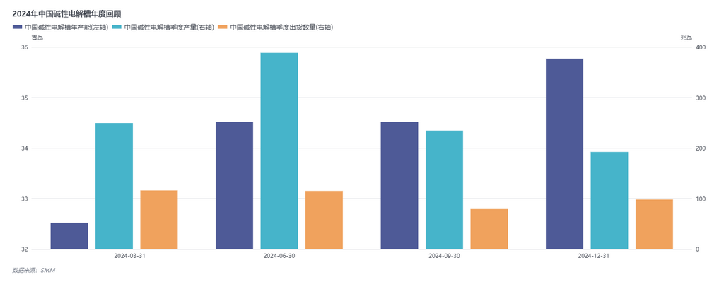 Graphique-1 : Statistiques trimestrielles de la capacité, de la production et des expéditions des électrolyseurs alcalins en Chine en 2024
