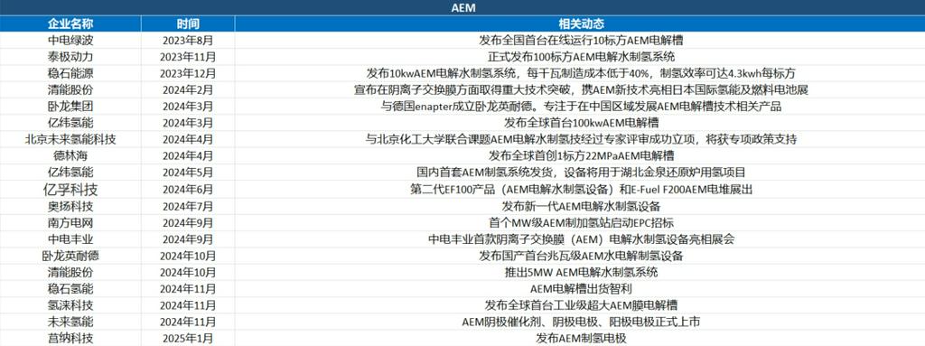 Les électrolyseurs AEM, en revanche, ont attiré l'attention pour leurs avantages en termes de coûts grâce à l'absence de métaux précieux.En 2024, certaines entreprises d'électrolyseurs se sont aventurées dans le domaine de l'AEM et ont obtenu des résultats notables, certains produits AEM ayant même été expédiés vers des marchés étrangers. Cependant, étant donné le délai de développement relativement court de l'AEM, la technologie n'a pas encore atteint le stade d'amélioration de l'efficacité de la production d'hydrogène. En conséquence, l'AEM n'est pas encore largement applicable dans les projets d'hydrogène vert qui privilégient l'efficacité. Il est prévu qu'au moins 3 à 5 années supplémentaires de pratique seront nécessaires pour tirer des conclusions définitives.