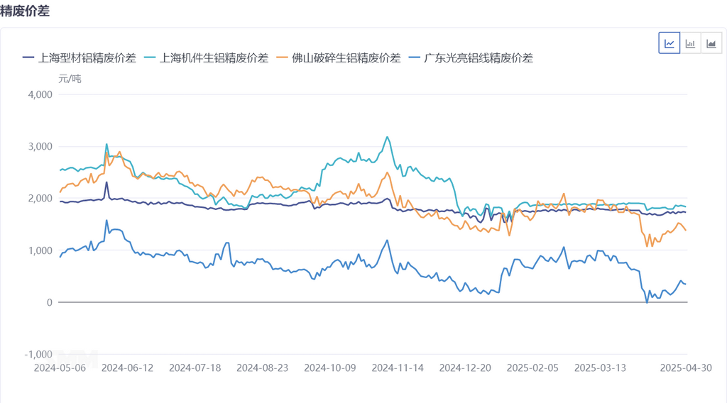 En termes d'écarts de prix entre l'aluminium A00 et les déchets d'aluminium, l'écart de prix entre l'aluminium A00 et les déchets d'aluminium de coulée mécanique à Shanghai s'est rétréci de 14 yuan/t à 1 832 yuan/t par rapport au jour de négociation précédent, tandis que l'écart de prix entre l'aluminium A00 et les déchets d'aluminium d'extrusion mixtes sans peinture à Foshan s'est considérablement rétréci de 70 yuan/t à 1 589 yuan/t.